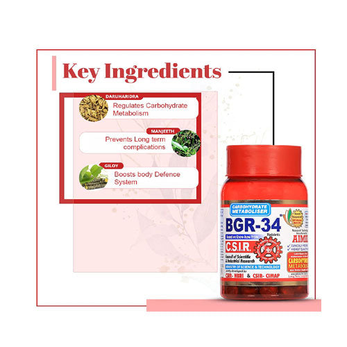 BGR-34 has been developed by the Council of Scientific and Industrial Research (CSIR), Govt. of India. Novel technology is effective in regularising carbohydrates metabolism with scientific authenticity. The research team comprising of eminent scientists and doctors has developed BGR-34, a novel phyto research providing, affordable, effective, and safe healthcare to the suffering masses.