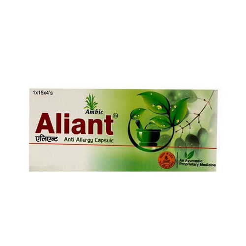Aliant Anti-allergic capsule is an Ayurvedic product that is highly beneficial in Skin and lungs related infections and disorders. This Ayurvedic medicine is enriched with the goodness of beneficial Ayurvedic herbs. Moreover, it is highly recommended for skin care diseases along with respiratory tract diseases. It is widely used for various skin disorders which include skin rashes, skin redness, skin irritation, and dandruff particles on the skin. Patients can even use it if they have any of the following respiratory diseases which include asthma, breathing problems, and chronic sneezing.