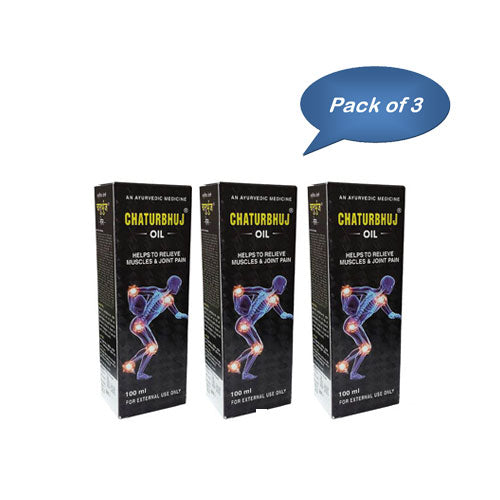 Indian Ayurvedic Traditions Chaturbhuj oil/tel is a uniquely effective remedy for joint pains no matter how old, Muscle pains, knee pains, back pain, headache, sprain, strain,stifness, Old injury pain due to gas thing pain, shoulder pain all type of discomforts of nerves, pain due to stiffness and pain in joints and muscles including all vaat diseases.