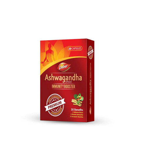 Dabur Ashwagandha Capsules- Immunity Booster is an efficacious herb, that has various health benefits, that includes its powers to combat diabetes, decrease inflammation, block arthritis, asthma, hypertension, stress, and rheumatism. It is a great immunity booster, that improves immunity due to its anti-oxidant properties. Ashwagandha is good for skin-care, and hair care, and has anti-wrinkle properties. Pure Ashwagandha also assists in increasing height and managing thyroid problems.