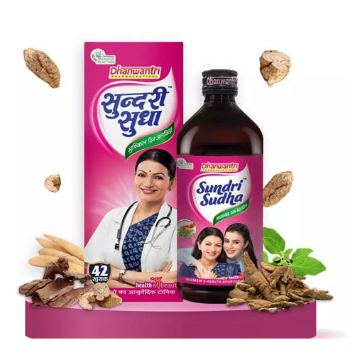 Dhanwantari Pharmaceutical Sundri Sudha is specially formulated to keep in view the various problems faced by females it is a combination of Red-sandal, Ashok Chahal, shareware, Ashwagandha, Dharti flower roots, and many other important ingredients. It is nutritious for women and also provides strength.