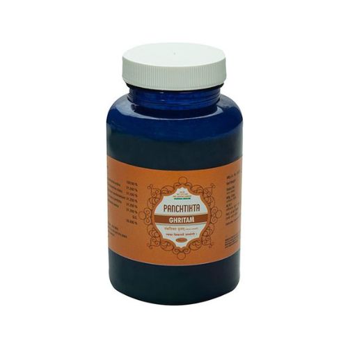 Panchtikta Ghritam is an Ayurvedic medicine that is said to help with a variety of conditions, Typhoid, Anemia, Skin diseases, Erysipelas, Helminthiasis, Piles, and Psoriasis